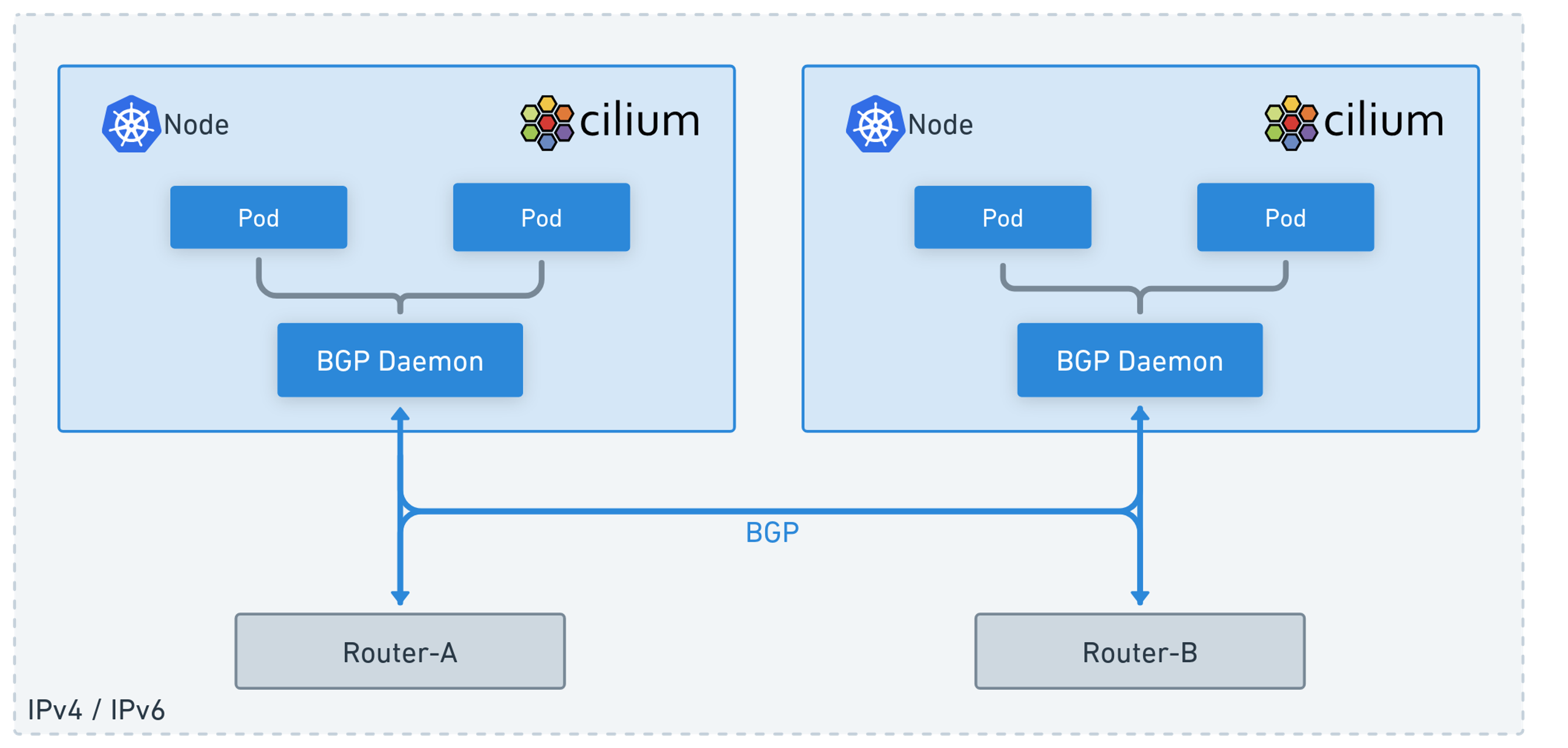 이러한 경우 Cilium에서 BGP Control Plane을 활용하여 외부 라우터와 BGP 연동을 할 수 있습니다.