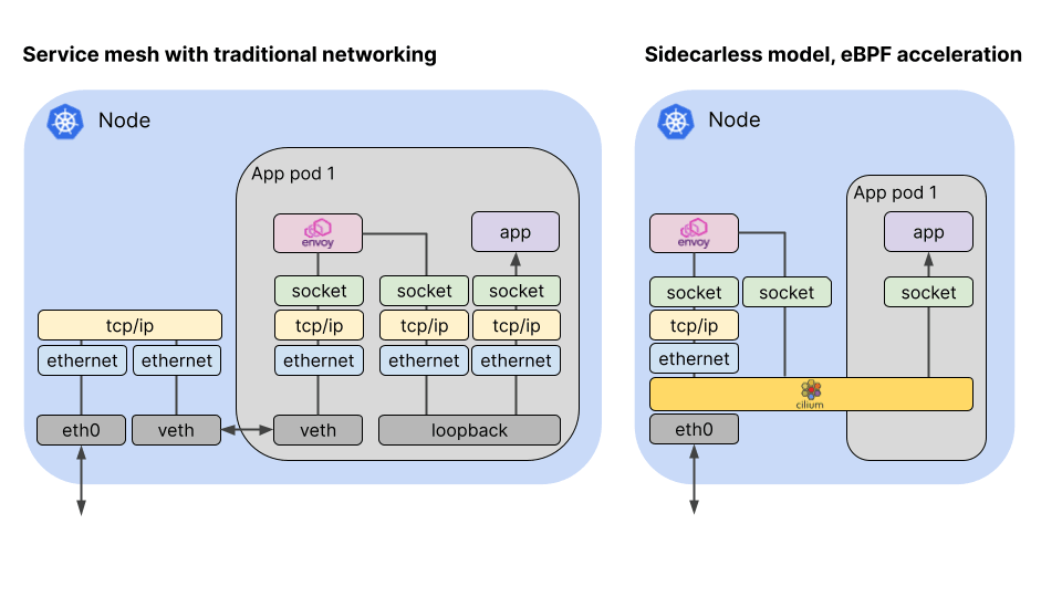 전통적인 Envoy Sidecar 기반의 ServiceMesh와 Cilium Service Mesh는 아래와 같은 차이가 있습니다.